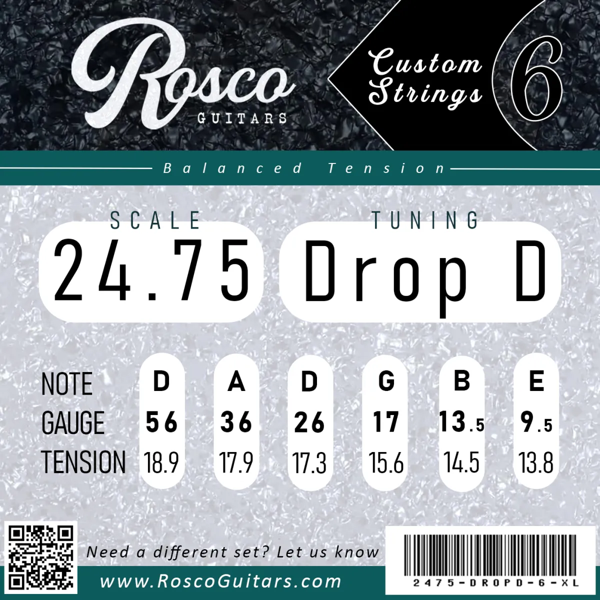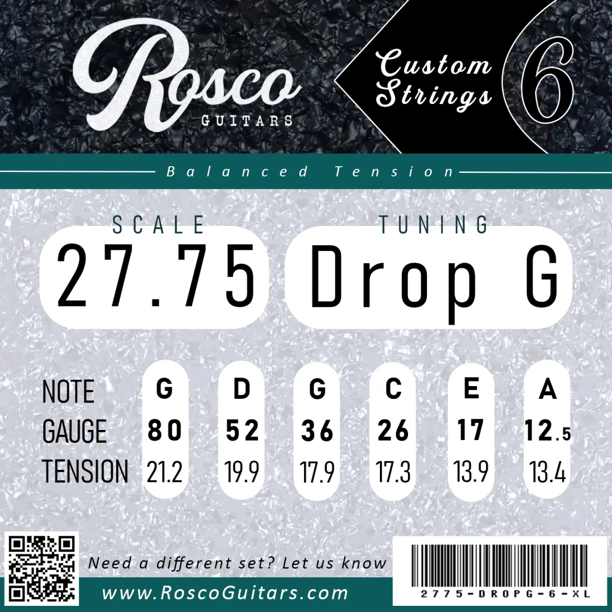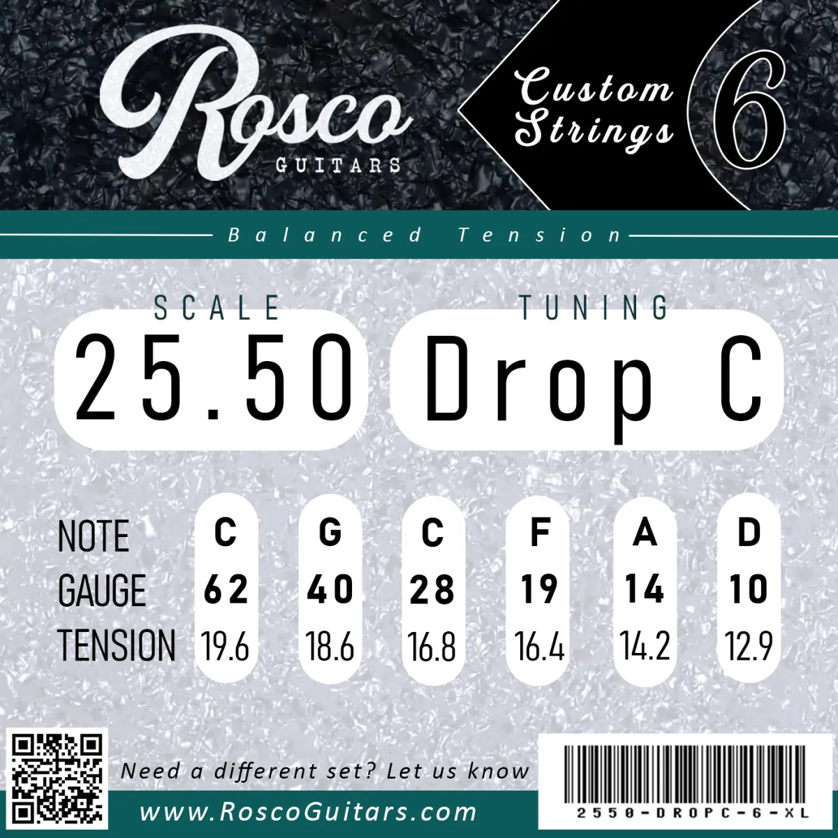 Rosco Custom Strings are selected by your scale length and tuning, so you’re not stuck guessing, calculating or mixing sets. Each set has been engineered to feel balanced, sound great, and keep it simple.